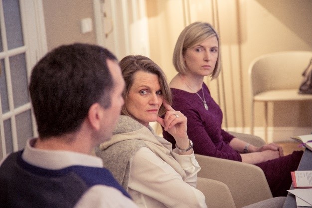| Miembros del panel (Izquierda a derecha): James Wolffsohn, Patricia Wagrez y Gillian Bruce |