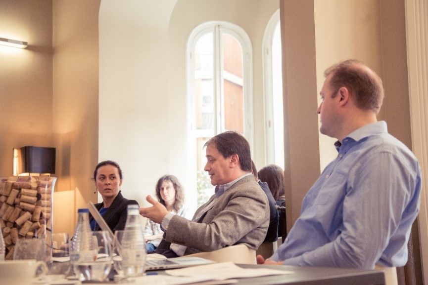 Diálogo entre (izq.-der.) Elena García Rubio, Giancarlo Montani y Christian Kempgens |